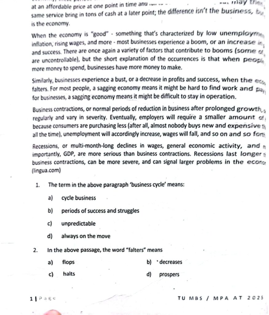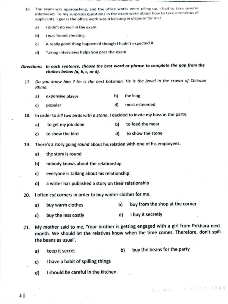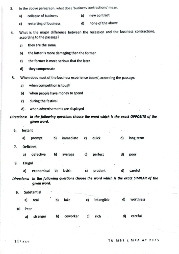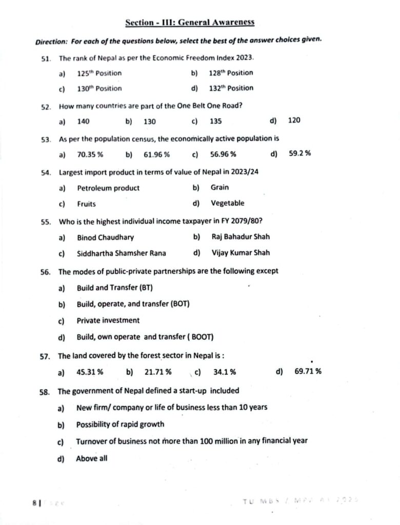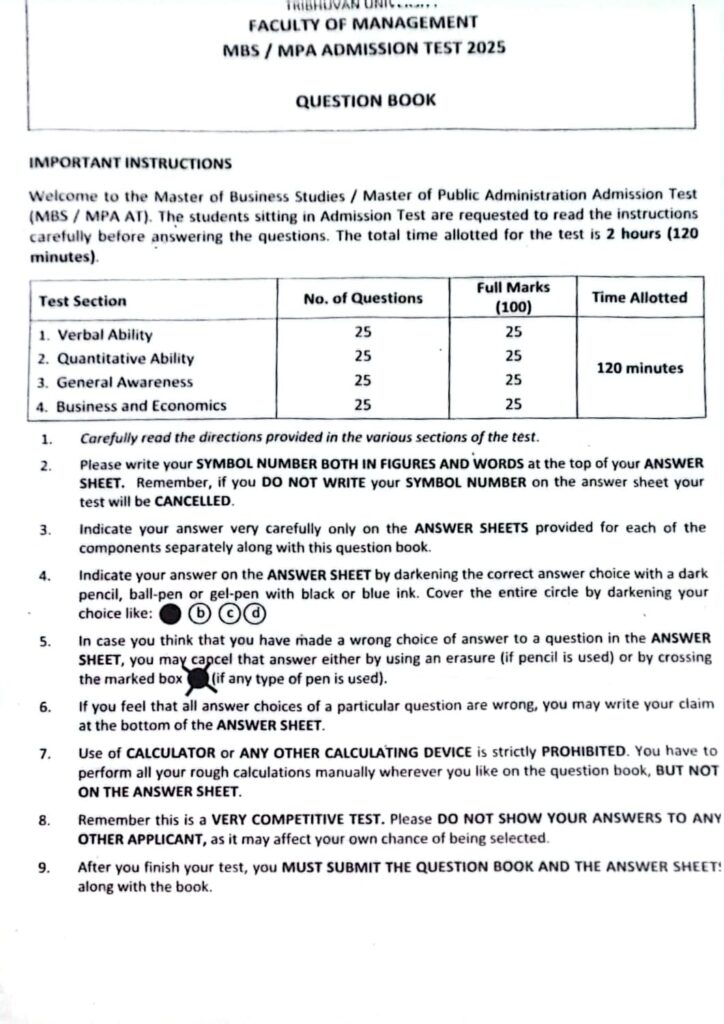 MBS/MPA Entrance Exam Question – 2081 July 2, 2025 by ajaysingh29539@gmail.com MBS/MPA Entrance Exam Question – 2081